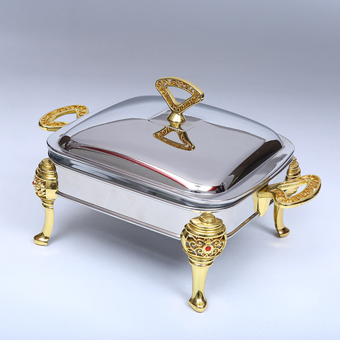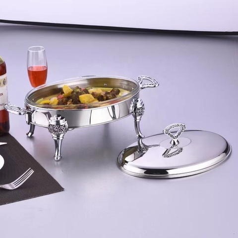 2.0L 3.0L yuvarlak Oval altın Metal kapaklı restoran Chefing çanak otel gıda ısıtıcısı isıtıcı reşo çanak